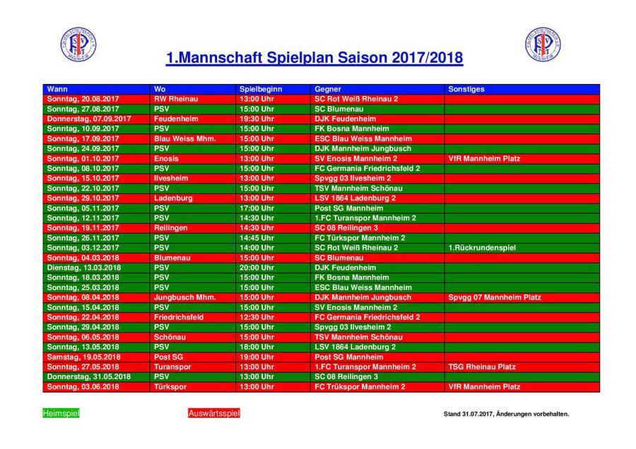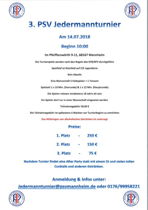 Am kommenden Sonntag trifft unsere 1. Mannschaft auf den Kreisliga Aufsteiger aus Ladenburg. Über zahlreiche Besucher freut sich die Mannschaft am 30.07.2017 um 15 Uhr auf unserem Sportplatz im Pfeifferswörth.